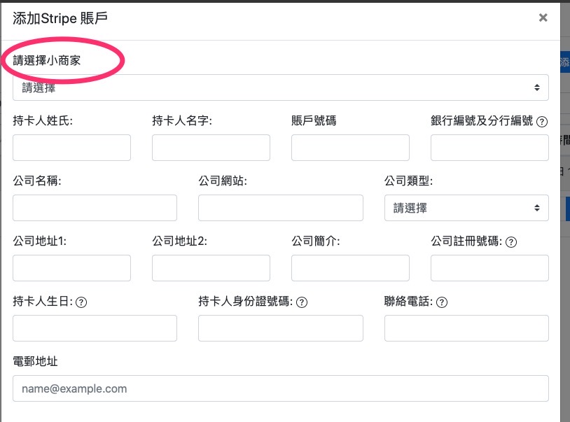 3.4 在小商家成為你旗下的小商家後,請記得在“Stripe帳戶“處與小商家的Stripe帳戶進行對接。